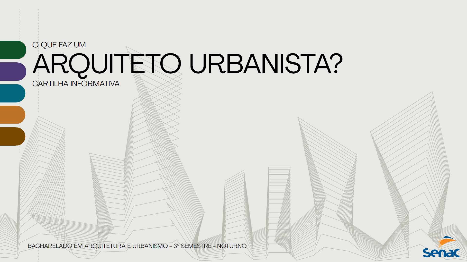 Publicação semestral da disciplina Estudos Sociais Urbanos-Práticas Extensionistas, do 3o semestre do BAU Senac, que apresenta ao público leigo as diversas práticas e atribuições profissionais da arquitetura e do urbanismo a partir de exemplos concretos e ilustrados